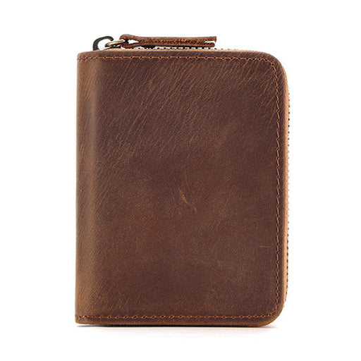 Original price $67.99Current price $47.99Men's Genuine Leather Wallet RFID Blocking Retro Bifold Zipper Card Holder with Key Chain